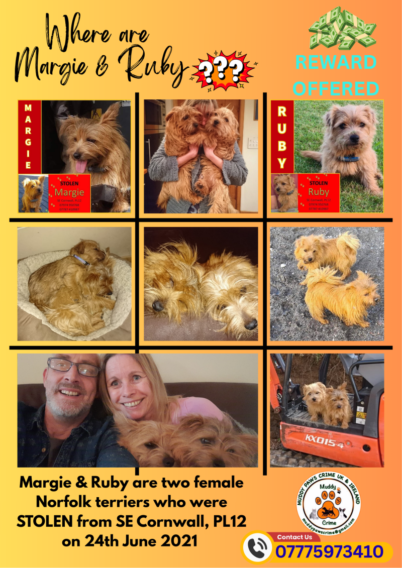 Help to find Margie & Ruby, our two Norfolk terriers who were STOLEN from SE Cornwall, PL12 on 24th June 2021